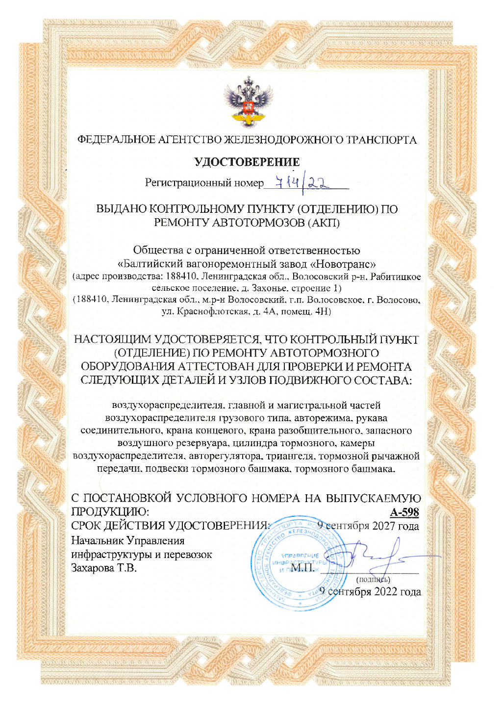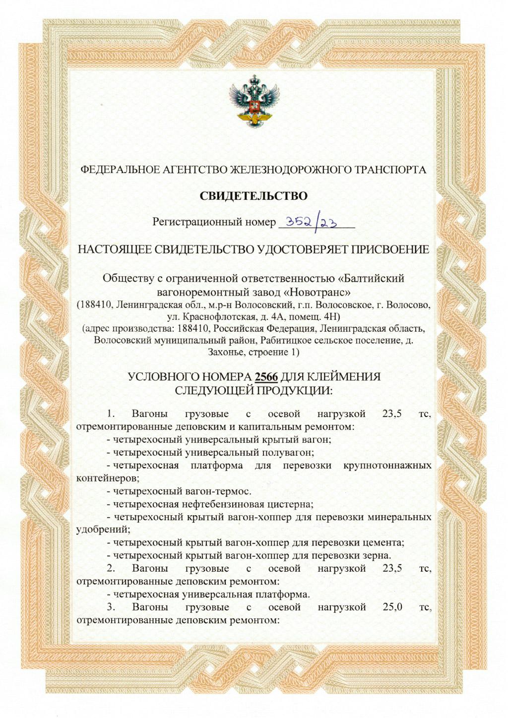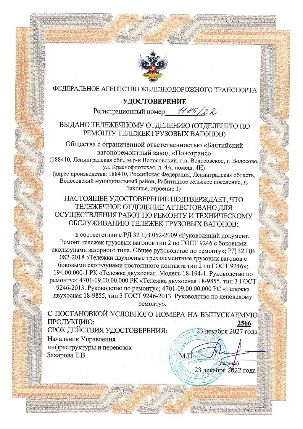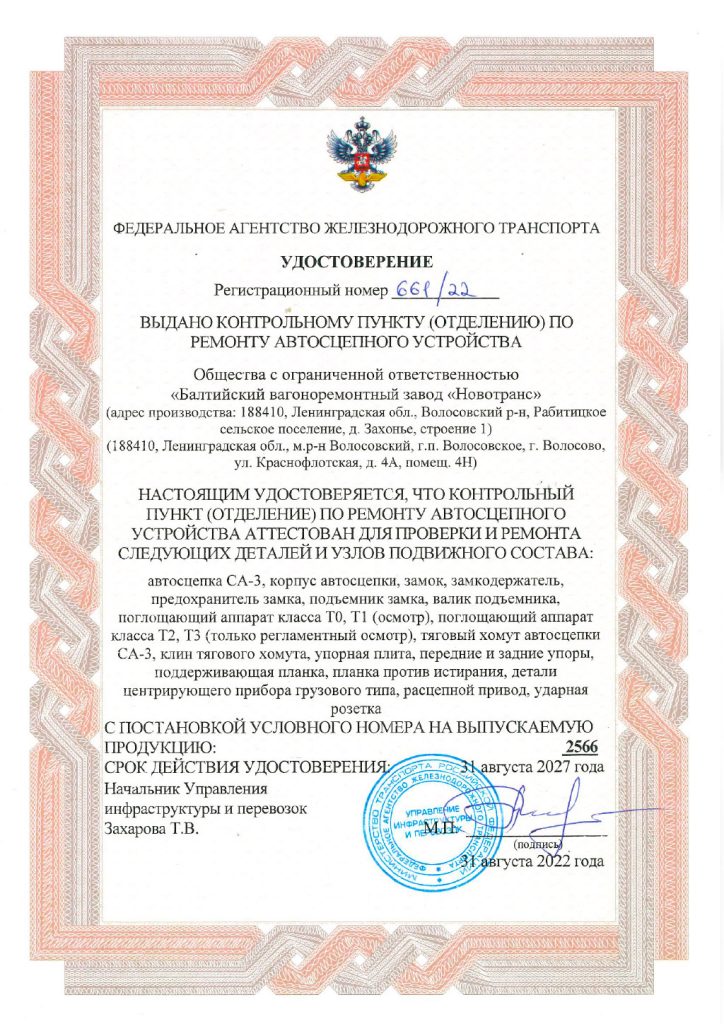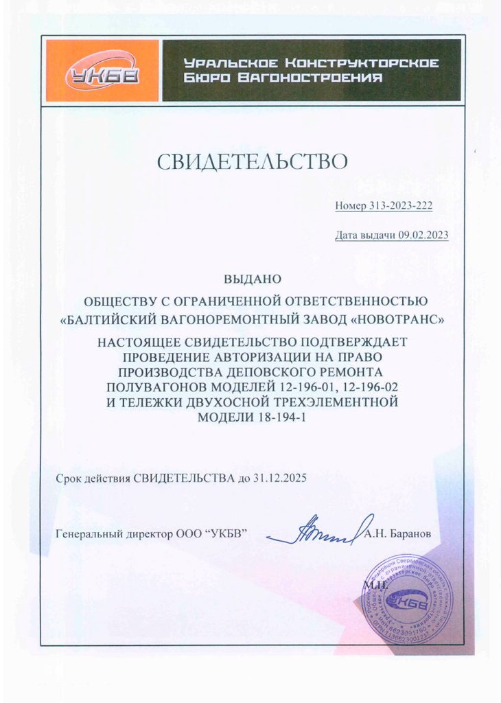 БАЛТИЙСКИЙ ВАГОНОРЕМОНТНЫЙ ЗАВОД "НОВОТРАНС"