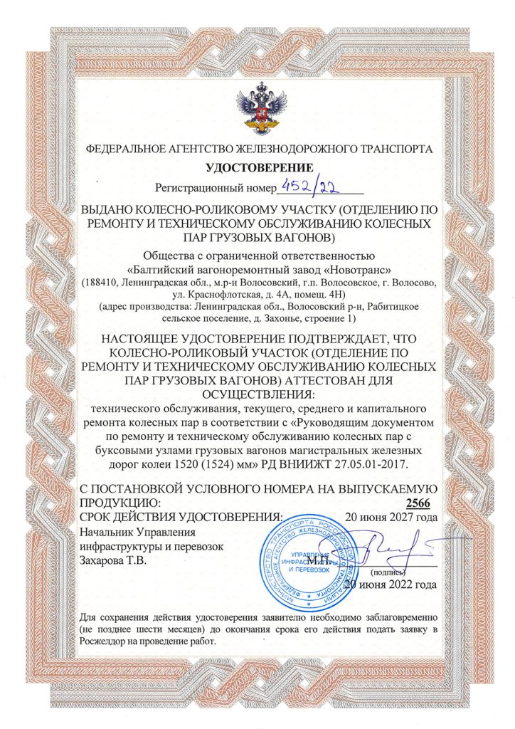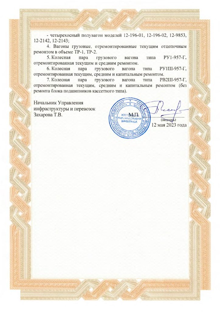 - Завод аттестован на проведение ремонта и техническое обслуживание инновационных грузовых вагонов с осевой нагрузкой 25 тс